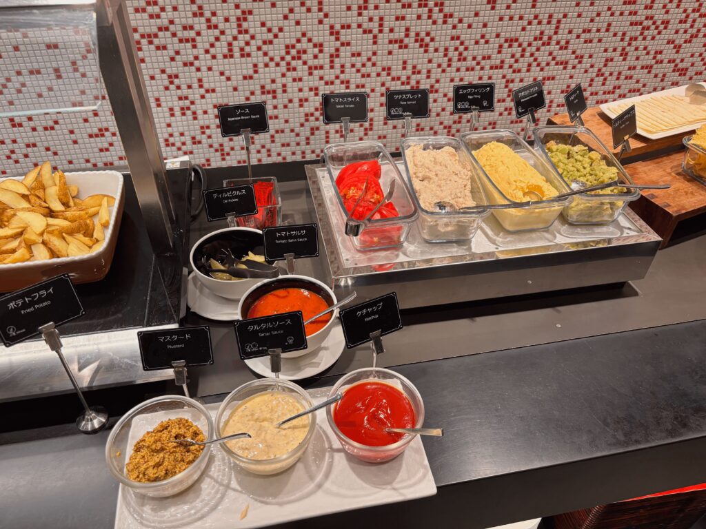 羽田空港プライオリティパスレストラン「オールデイ ダイニング グランドエール」で提供されているビュッフェメニュー