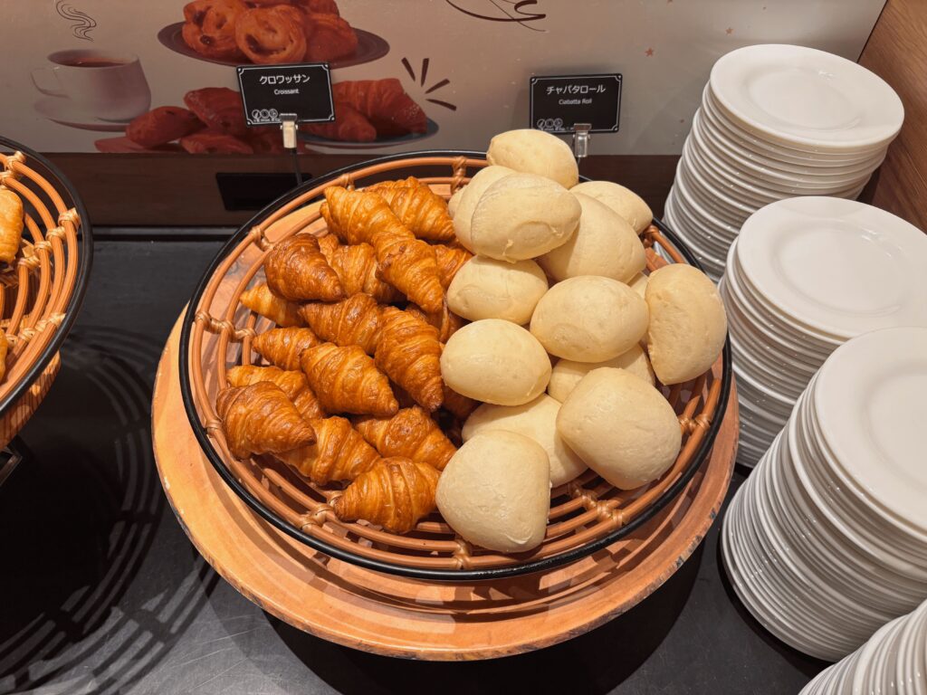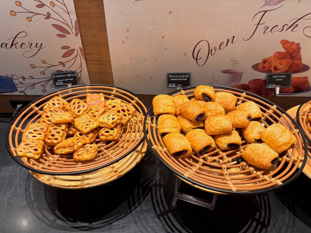 ランチビュッフェの前はホテルの朝食会場になっていることもあり、デニッシュ系のパンなども充実しています。