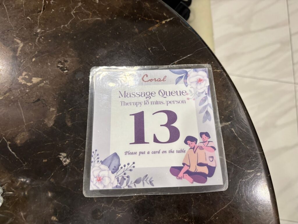 The Coral Executive Loungeの最大の特徴は、無料のマッサージサービスがあること。