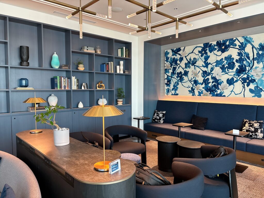 ラウンジエリアはアメリカン・エキスプレス社のシンボルカラーでもあるブルーを基調としたモダンで落ち着いた空間が広がります。