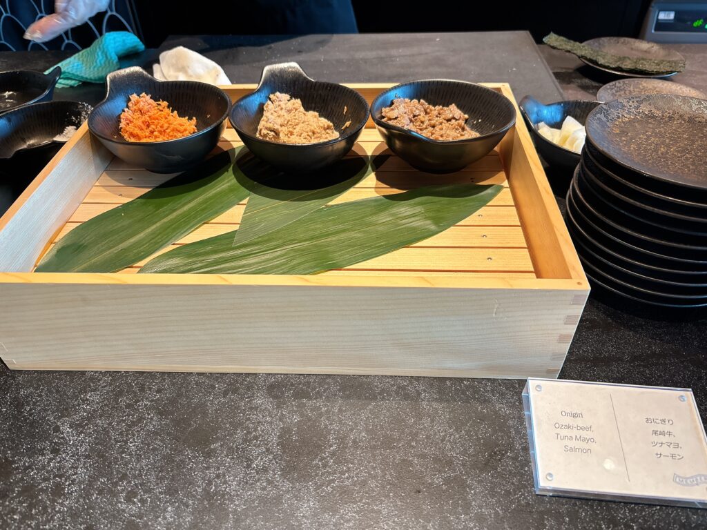 朝食の時間帯のライブキッチンでは出来立てのおにぎりをいただけます。