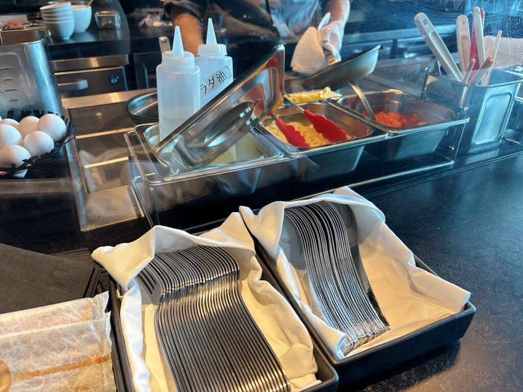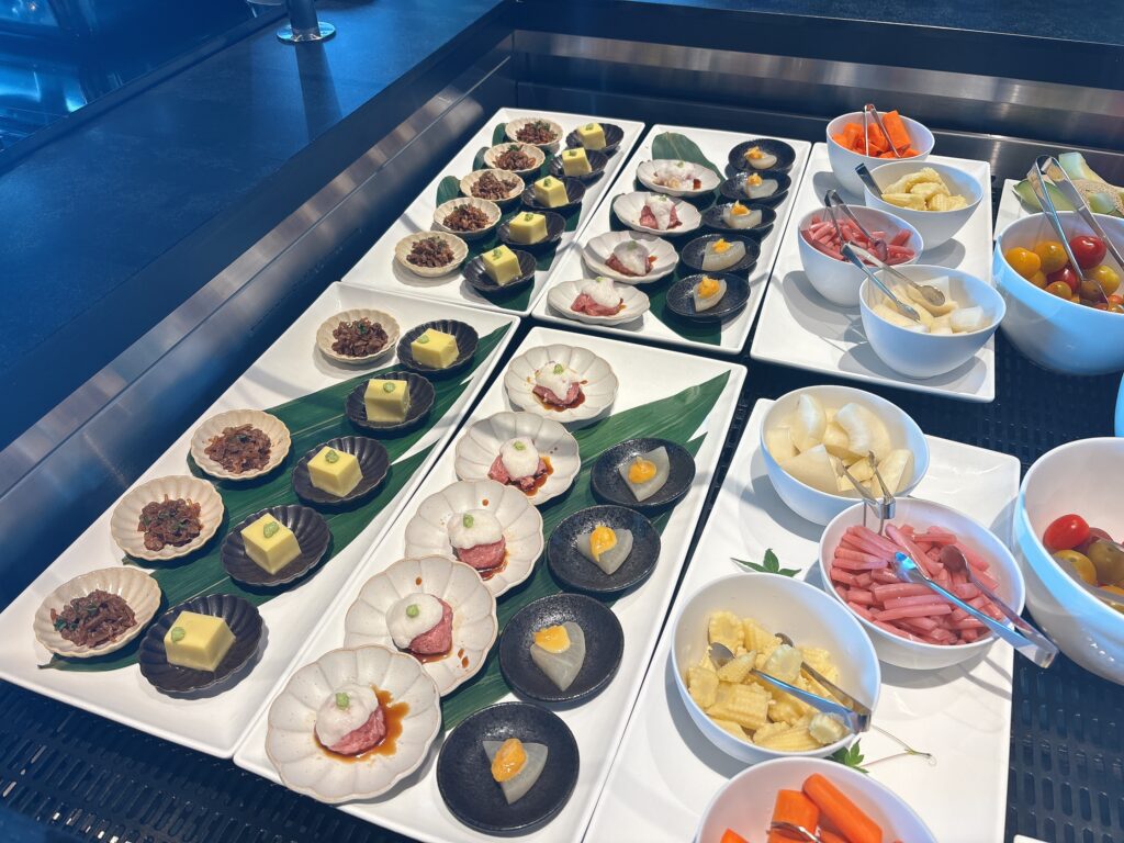 また、羽田空港のセンチュリオンラウンジのスタッフにお伺いしたところ、ビュッフェ台のメニューやライブキッチンで提供されるメニューは3週間おきに変更されるとのことでした。