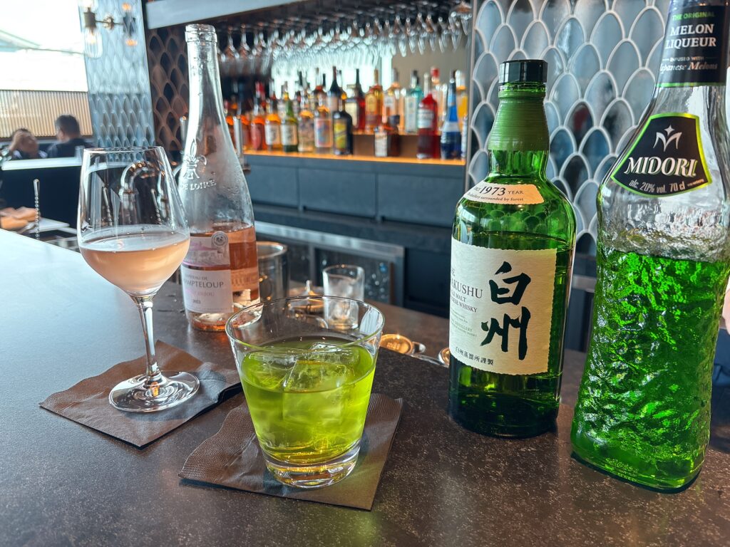 今回は白州とメロン味のリキュールを使ったセンチュリオンラウンジオリジナルのカクテルをいただきました。