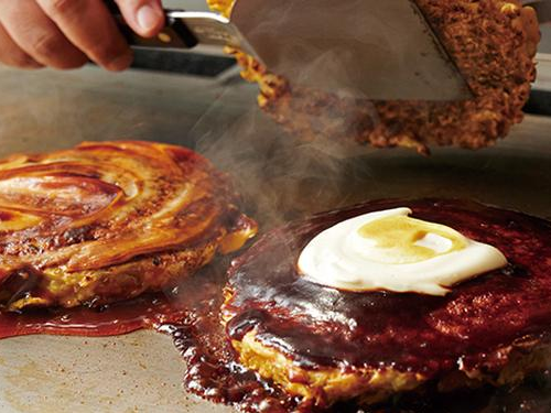 看板メニューは、昭和21年創業の味を引き継ぐお好み焼き。